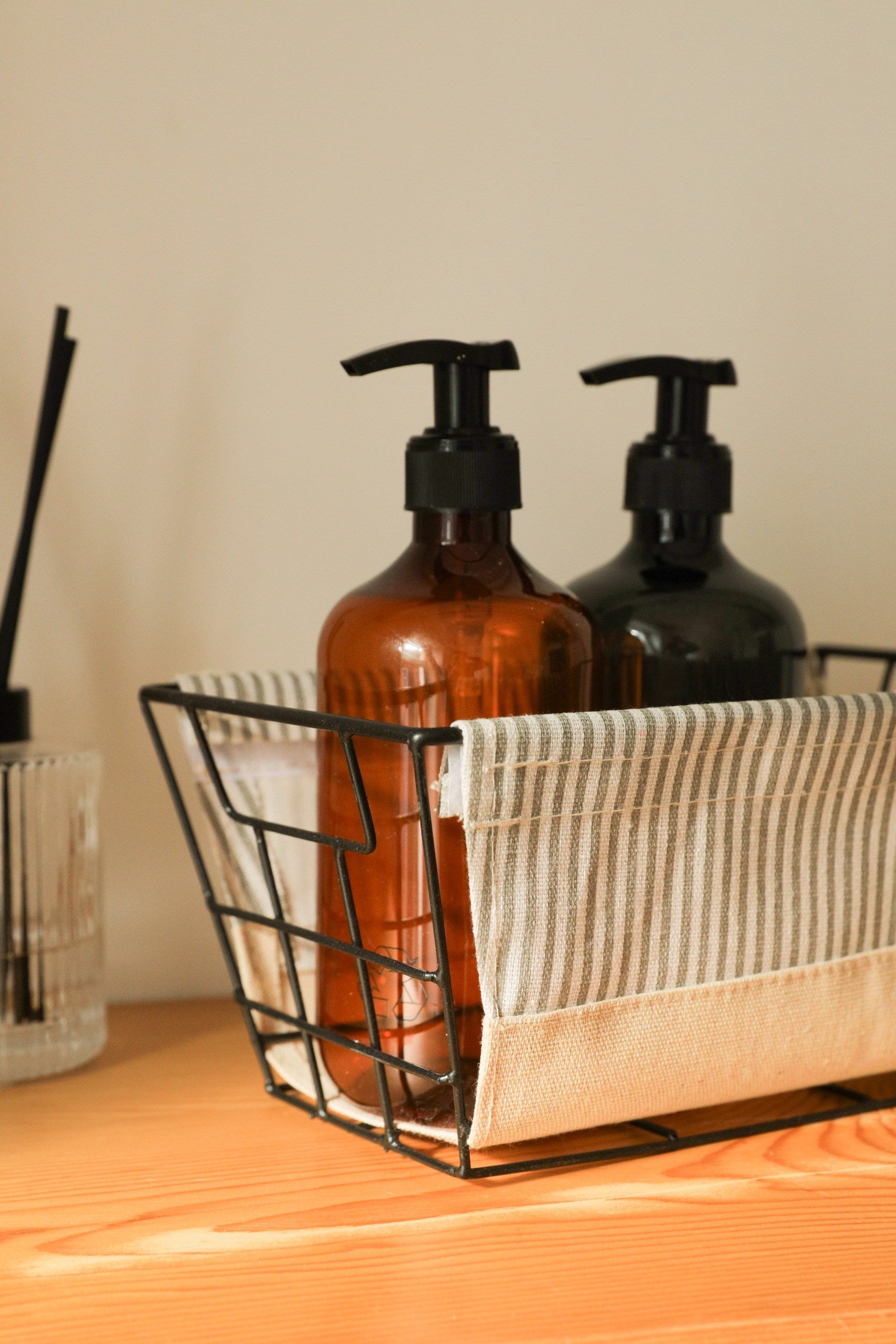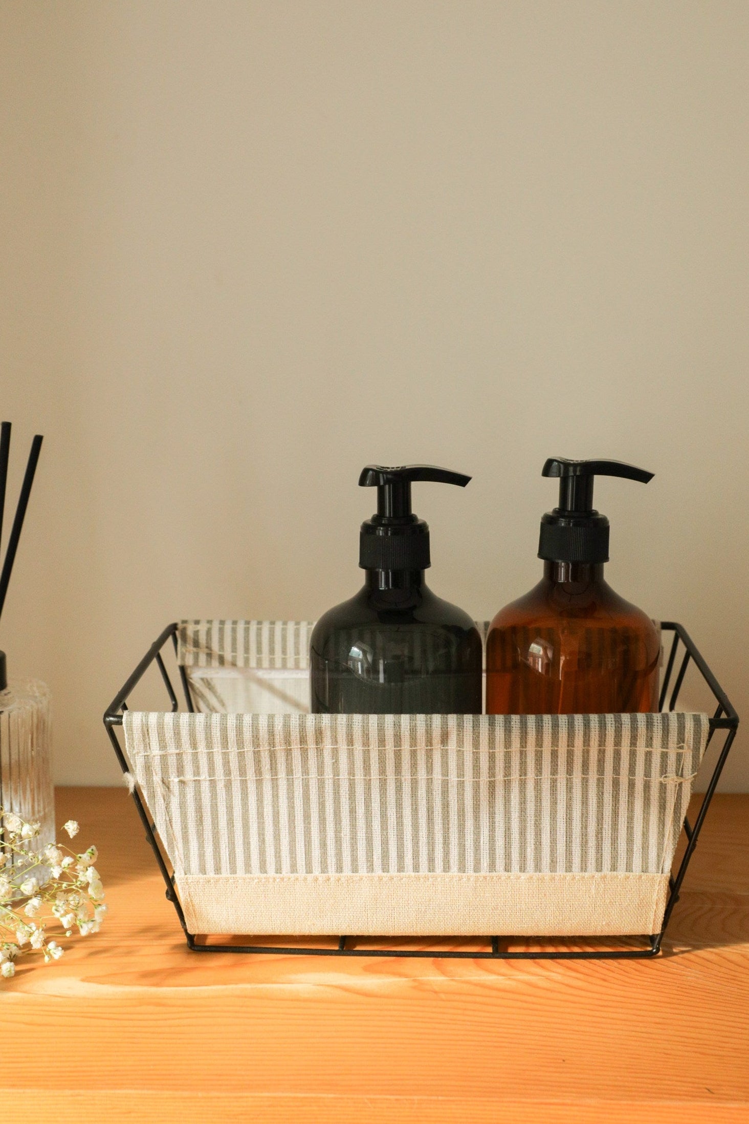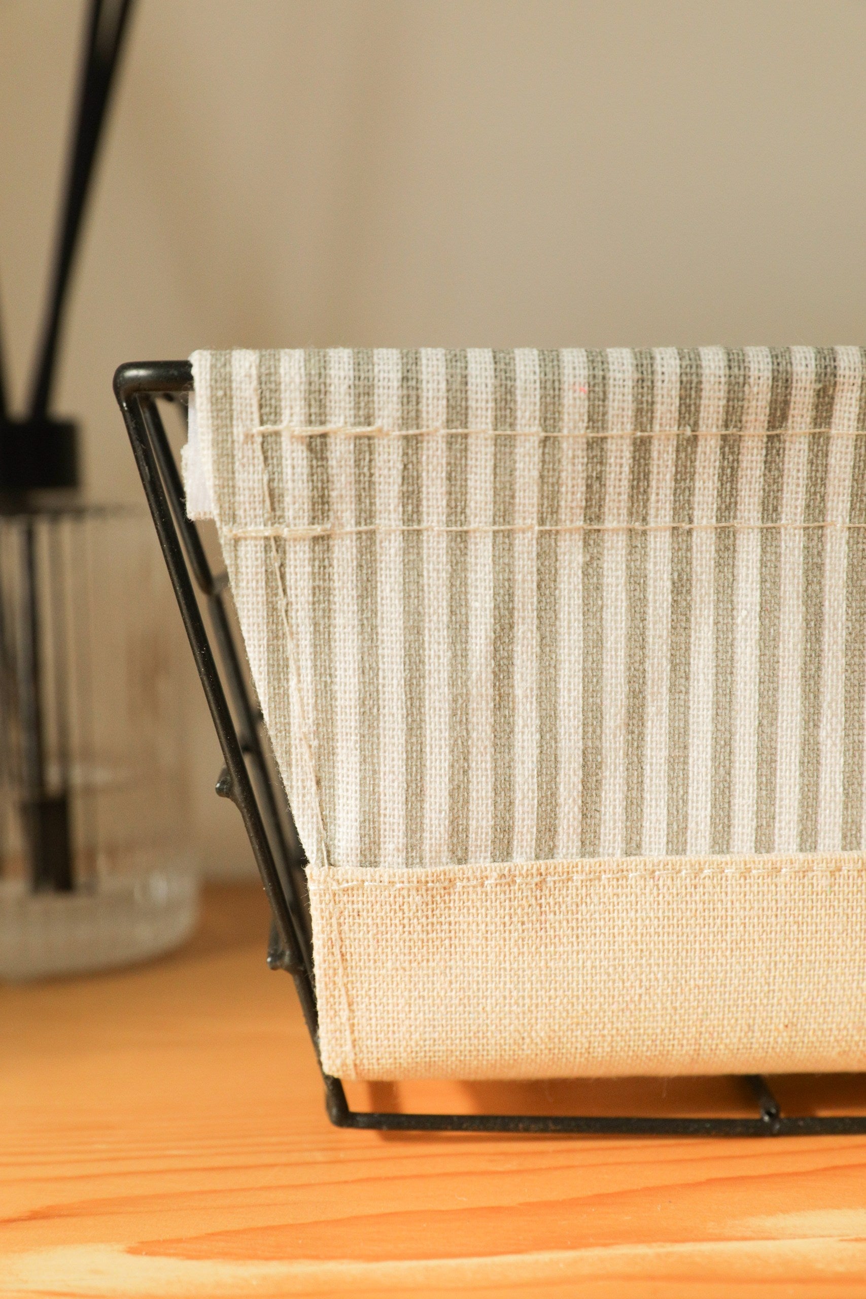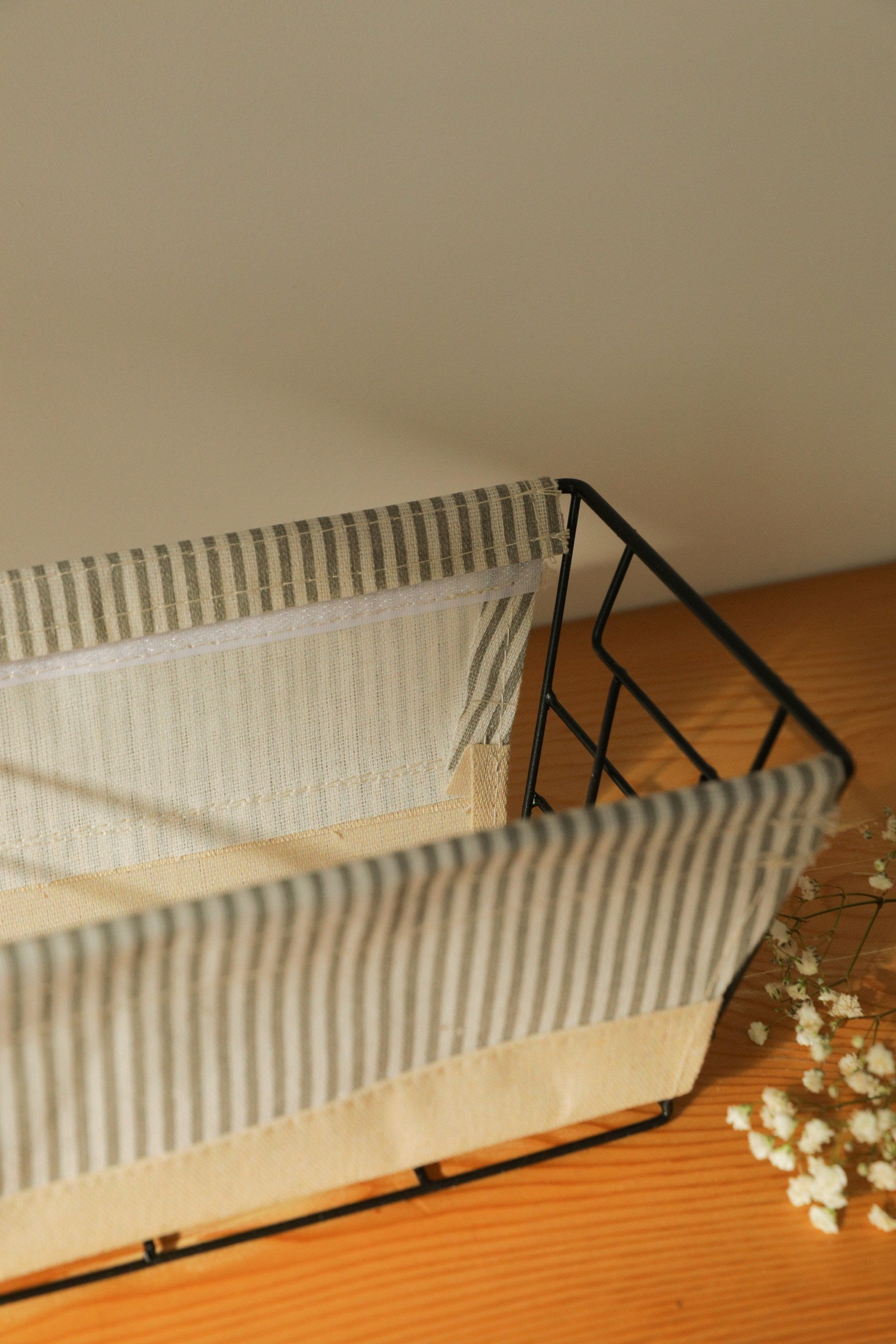 Multi-use basket designed for storing and keeping items neatly inside, featuring a sturdy steel wire frame combined with a fabric lining.